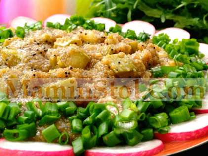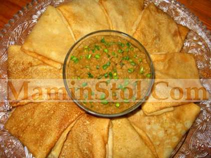 Хорошо бы на стол поставить небольшой салатник с кусочками домашнего сыра, чтобы в процессе еды подсыпать добавку сыра.