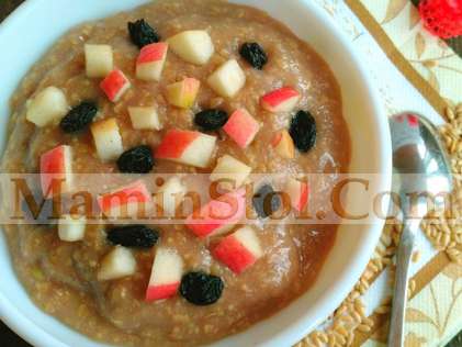 Подаем порционно, обильно посыпав ягодами и изюмом.