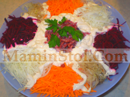 Сегодня на столе у нас веганский салат - очень сытный, очень вкусный и весьма полезный для здоровья!