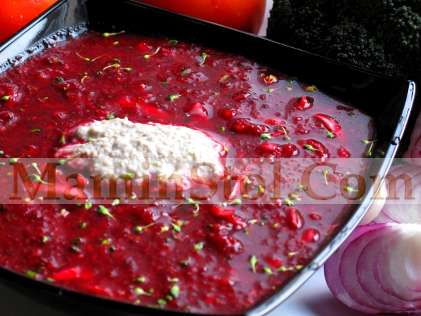 туда же добавить воду и помидоры - превратить в пюре.