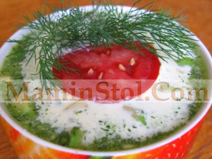 При подаче суп обильно посыпаем свежими (или размороженными) зернами кукурузы и любой зеленью (по вкусу).