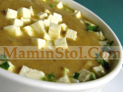 Грушу нарезаем тонкой короткой соломкой, порей (лучше взять зеленую часть) тонкими полукольцами, салатные листья короткими полосками.