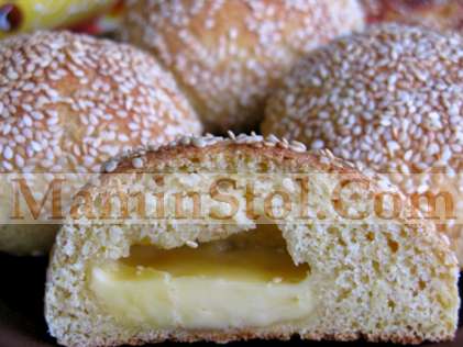10. Смазываем яйцом, смешанным с небольшим количеством воды и сахара, можно посыпать кунжутом, но его сначала необходимо немного обжарить на сухой сковороде.