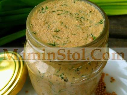 Добавляем сразу все оставшиеся ингредиенты, кроме масла, и перемалываем несколько секунд. Затем частями вливаем растительное масло (вкуснее всего с тыквенным) за два-три раза, перемешивая каждый раз массу несколько секунд. Последний раз перемалываем около минуты. Готово!